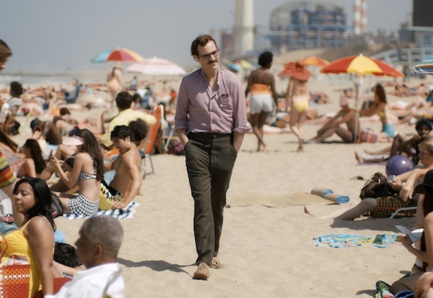 É em elementos como o apartamento de decoração modulada, o escritório clean e o figurino e bigode hipster do protagonista que estão os verdadeiros debates desse novo trabalho de Spike Jonze. Para colocar na mesa temas como solidão, carência afetiva, conceito de amor e particularmente a crescente sensação de que não mais existimos fora do ambiente virtual, Jonze usa a mesmíssima moldura que adotam os cartazes hoje compartilhados pela timeline mais próxima de você. Tudo é agradável, limpo, às vezes até fofo, a luz tem com frequência um filtro nostálgico, mas, claro, uma nostalgia esterilizada pelo digital. É o futuro tal como ele foi desenhado pela Apple ou pelo Google Glass. Vejo mais conteúdo no uso dessa estética como mecanismo de linguagem das aflições contemporâneas que nas aflições por si sós, isoladas dessa moldura. Ela é, sobretudo, um filme-tipografia, um filme-design. E as verdadeiras questões surgem daí.
